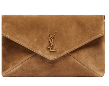Velvet Night. This large clutch redefines evening wear. Crafted from sumptuous, quilted suede, it offers a luxurious texture and soft structure, while the bold YSL monogram acts as the ultimate statement in chic restraint.