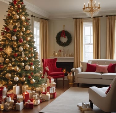 And for a touch of classic holiday warmth, consider adding subtle pops of deep red or burgundy through candles, ribbon, or accent pillows. These rich hues complement the neutral base beautifully, infusing a cozy, festive charm that still feels refined and intentional.